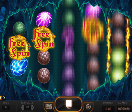 La tragamonedas Draglings se desarrolla en una cueva llena de rocas puntiagudas. A primera vista, los símbolos parecen huevos y bolas con diferentes colores y texturas. Estos símbolos pueden aparecer apilados, cubriendo a menudo carretes completos con un solo símbolo. Entre los huevos, verás a los dragones bebés animados (uno azul y otro rojo) que escupen fuego. De vez en cuando, uno de ellos se expandirá y se convertirá en un dragón de tamaño completo visualmente impresionante que llenará un carrete completo con comodines.
